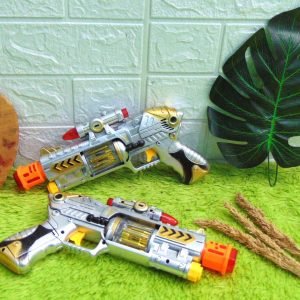 Pistol laser gun yang bisa mengeluarkan suara tembakan, lampu warna warni, bergetar, dan pantulan laser